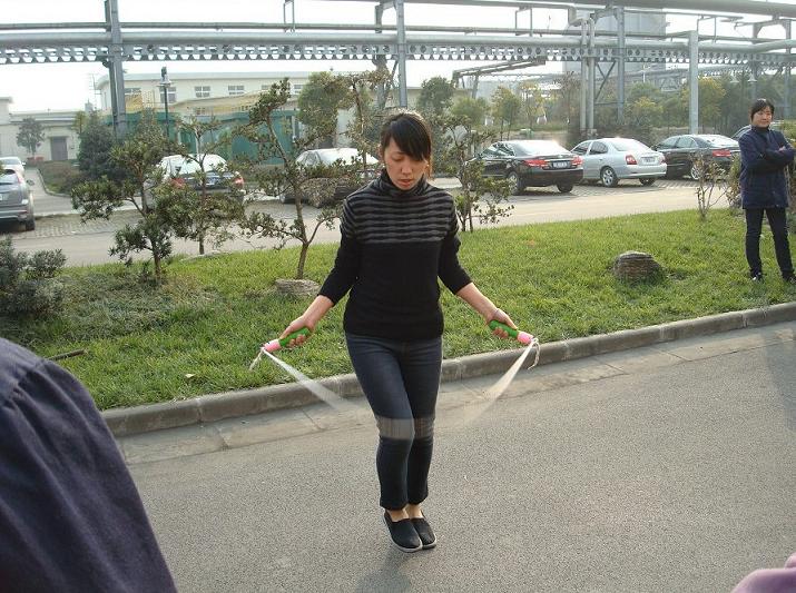 為豐富我公司女職工的業(yè)余文化生活,增強(qiáng)廣大女職工的身體素質(zhì),公司黨總支和工會與12月29日和30日下午舉辦了公司首屆跳繩比賽。參加本次比賽的有蘇潤高碳材、中化鎮(zhèn)江、蘇菱公司、物流公司的80多名隊(duì)員。經(jīng)過激烈的角逐,最終冠軍被蘇潤一支部沈玉潔獲得,成績:510個;二等獎為一支部葛秋紅,成績:478個,化產(chǎn)車間薛菲:485個;三等獎為生產(chǎn)部朱衛(wèi)紅:458個,戴領(lǐng)娣:465個,物流公司張愛萍:456個。這次比賽使廣大女職工從中得到了鍛煉,體會到了久違的跳繩樂趣,她們積極參與、勇于拼搏,展現(xiàn)了我公司女職工的風(fēng)采和魅力。