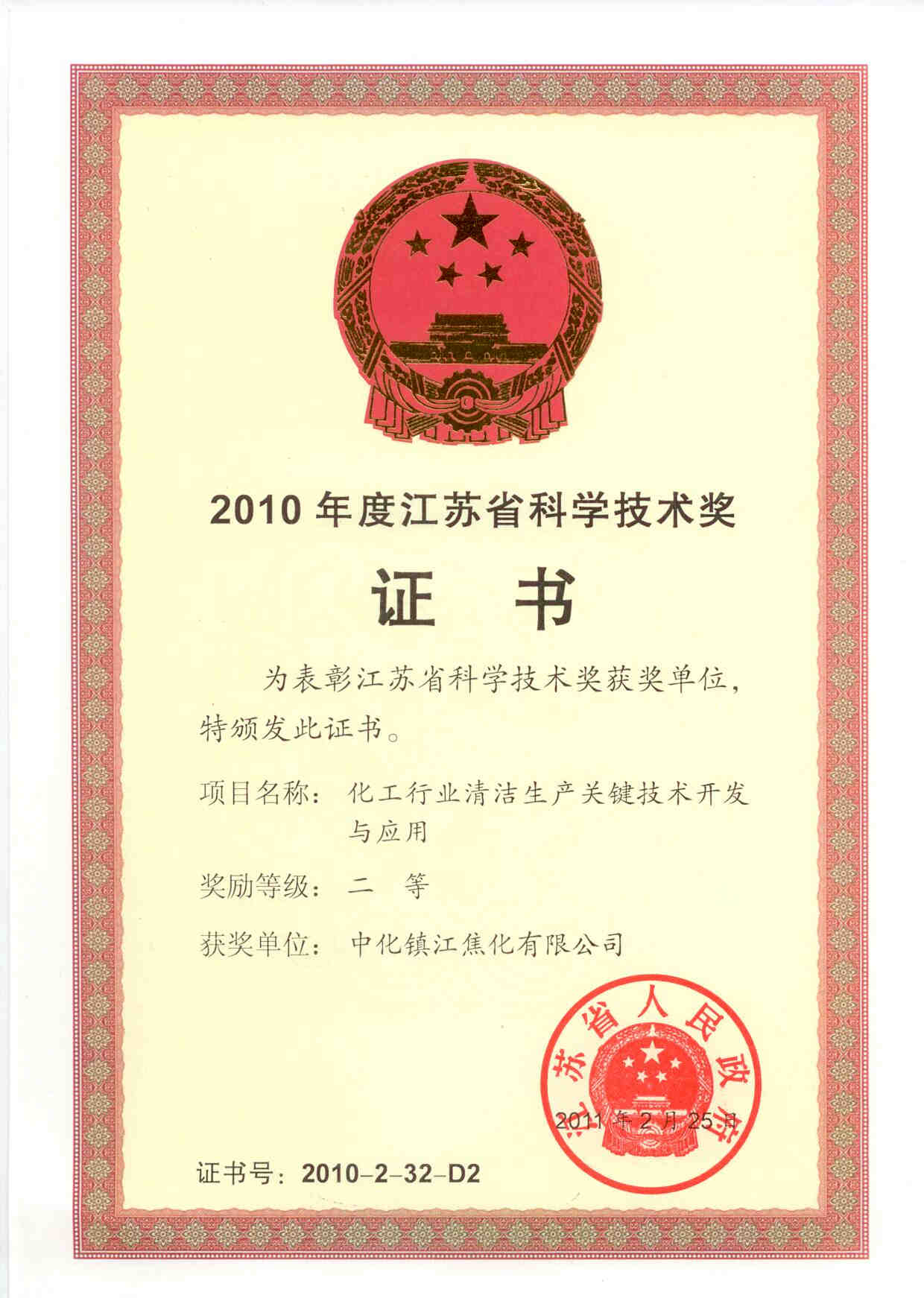 我公司榮獲“2010年度江蘇省科學(xué)技術(shù)獎(jiǎng)”證書(shū)