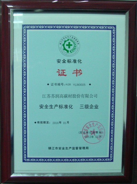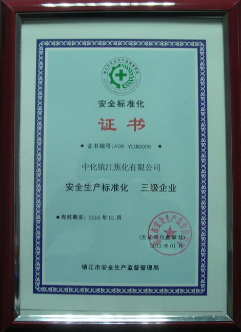 我公司獲鎮江市安全生產監督管理局頒發的企業“安全標準化證書”