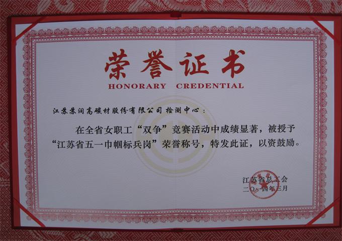 我公司檢測中心獲“江蘇省五一巾幗標兵崗”榮譽稱號