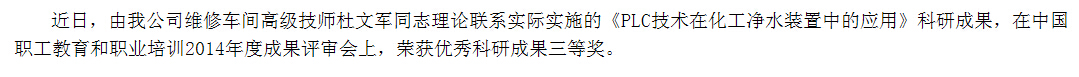我公司一科研成果獲全國評審三等獎