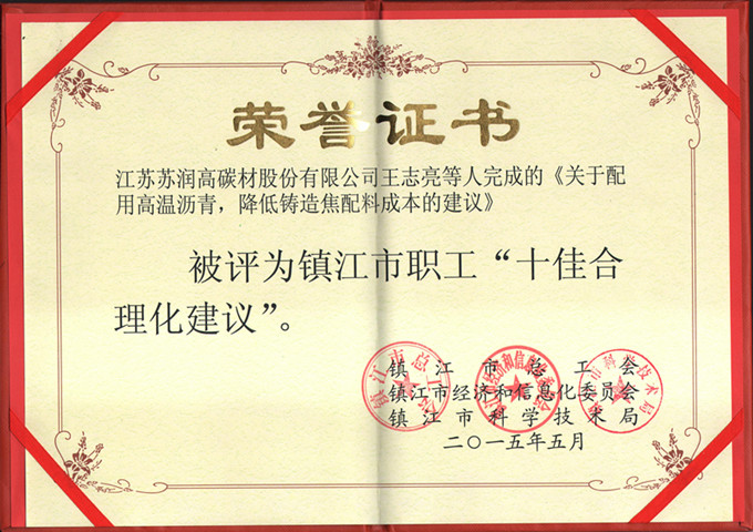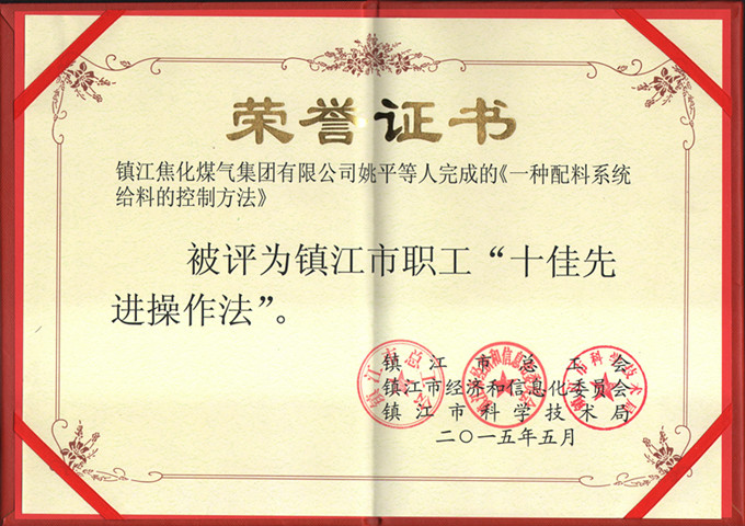 我公司在鎮(zhèn)江市職工“十佳先進(jìn)操作法”和“十佳合理化建議”評(píng)選中,分別獲得表彰。