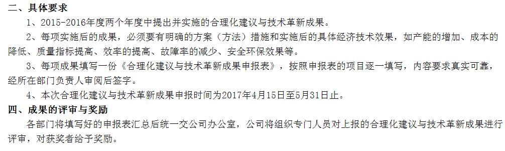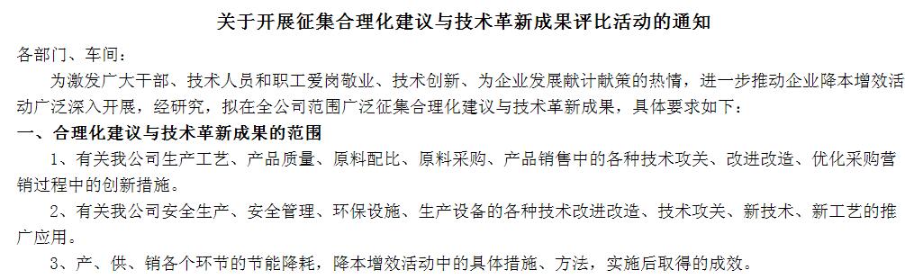 關于開展合理化建議和技術革新成果評比的通知