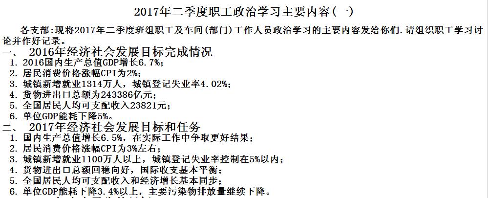 2017年二季度職工政治學(xué)習(xí)主要內(nèi)容